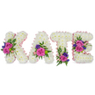 Our expert florists will arrange a beautiful tribute out of any letters or numbers of your choice. They will select the freshest white chrysanthemums and arrange them with soft pink roses and delicate spray roses, purple lisianthus, limonium, mini green chrysanthemums, white veronica and greenery to create a special tribute to represent your deep love and offer your prayers.